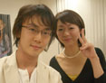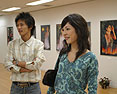 | ■磯貝美保子さん、後ろは尊敬するデザイナーの余語さん。作品は一見の価値あり! |