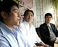 | ■鍋パーティー/帽子作家のまろさん(中央)とお医者さんになる寸前の冬のソナタのヨン様(笑) |